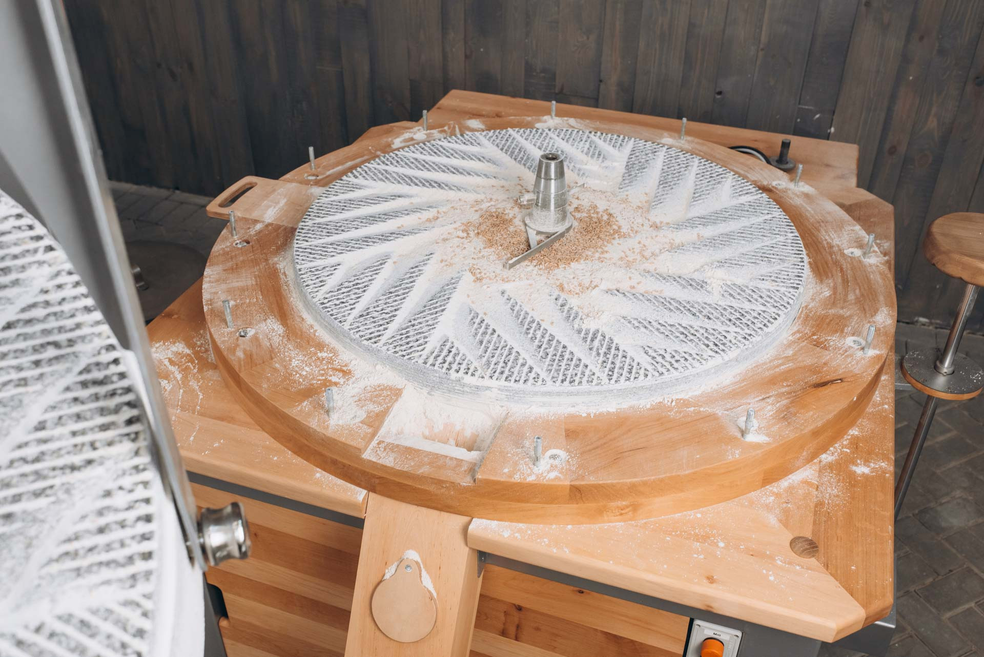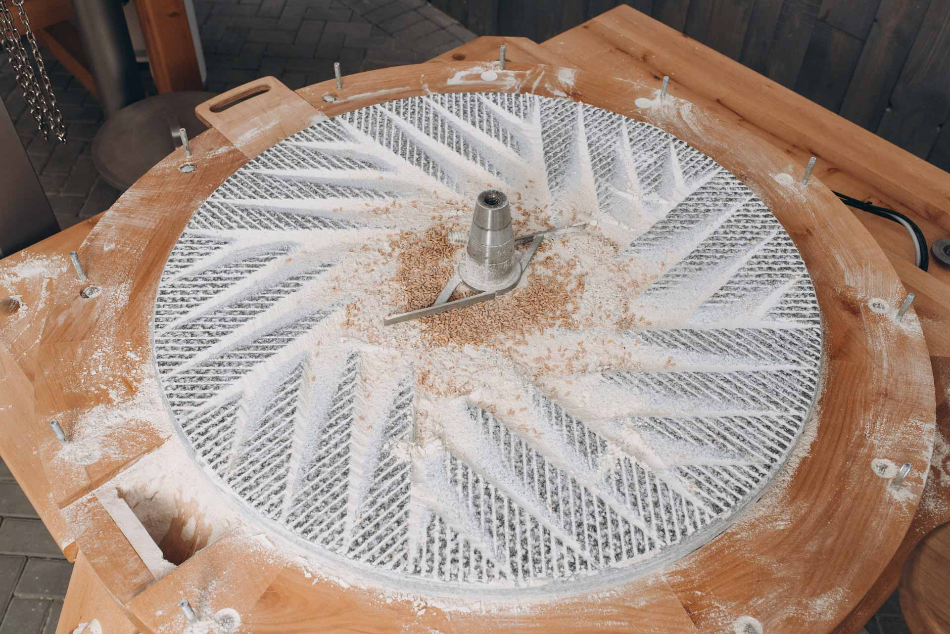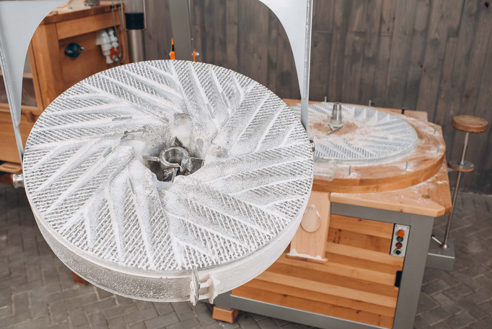 Жорнові млини перемелюють пшеницю, жито, кукурудзу, гречку, пшоно, спельту, рис, сухий горох, касаву в тонке цільнозернове та сортове борошно з багатим природним смаком і кольором. Є система регулювання тонкості помелу і комлпекти сит.